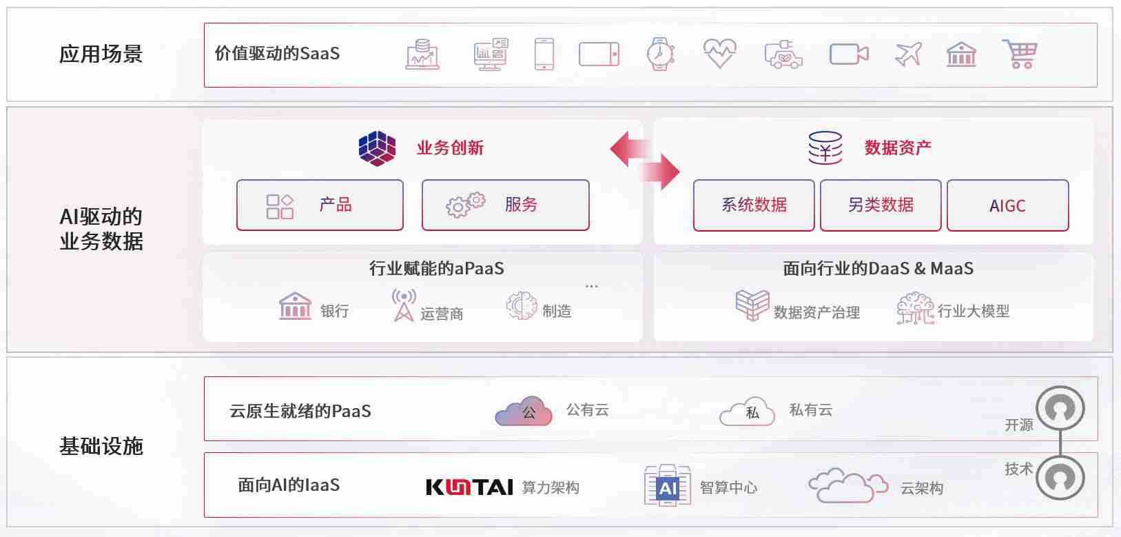 数字时代,,围绕企业数字化转型的关键要素,,新宝gg数码开创性的提出数云融合战略和技术体系框架,,,,着力在云原生、、、数字原生、、、AI原生和信创产业上架构产品和服务能力,,,,为处在不同数字化转型阶段的快消零售、、、、汽车、、、金融、、、医疗、、、、政企、、、教育、、、、运营商等行业客户提供泛在的敏捷IT能力和融合的数据驱动能力,,,构建跨界融合创新的数字业务场景和新业务模式,,,助力企业级客户建立面向未来的核心能力和竞争优势,,全面推动社会的数字化、、、智能化转型升级。。