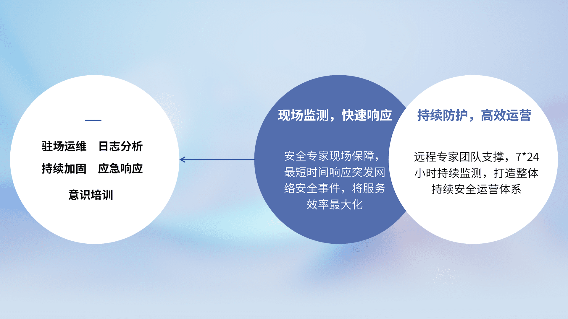 7X24小时持续监测安全事件,保持安全策略有效性,降低资产脆弱性风险,,,精准拦截黑客攻击,,减少被黑客利用的机会,,第一时间遏制,,,,降低损失。。。。