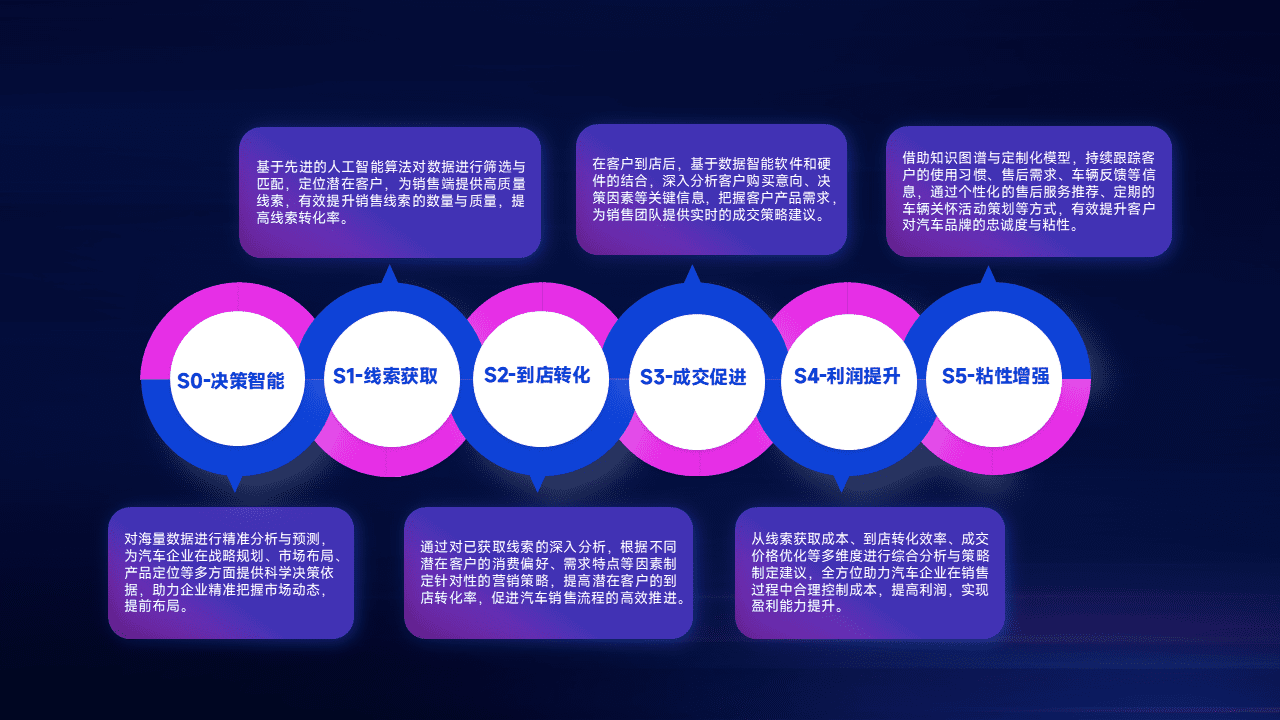 通过拓宽潜在客户来源、、、、优化线索分配并提高到店转化率,,,以增强销售效率。。同时,,利用线索数据不断优化分析模型,,,,有效提升转化率,,扩大营销影响力。。